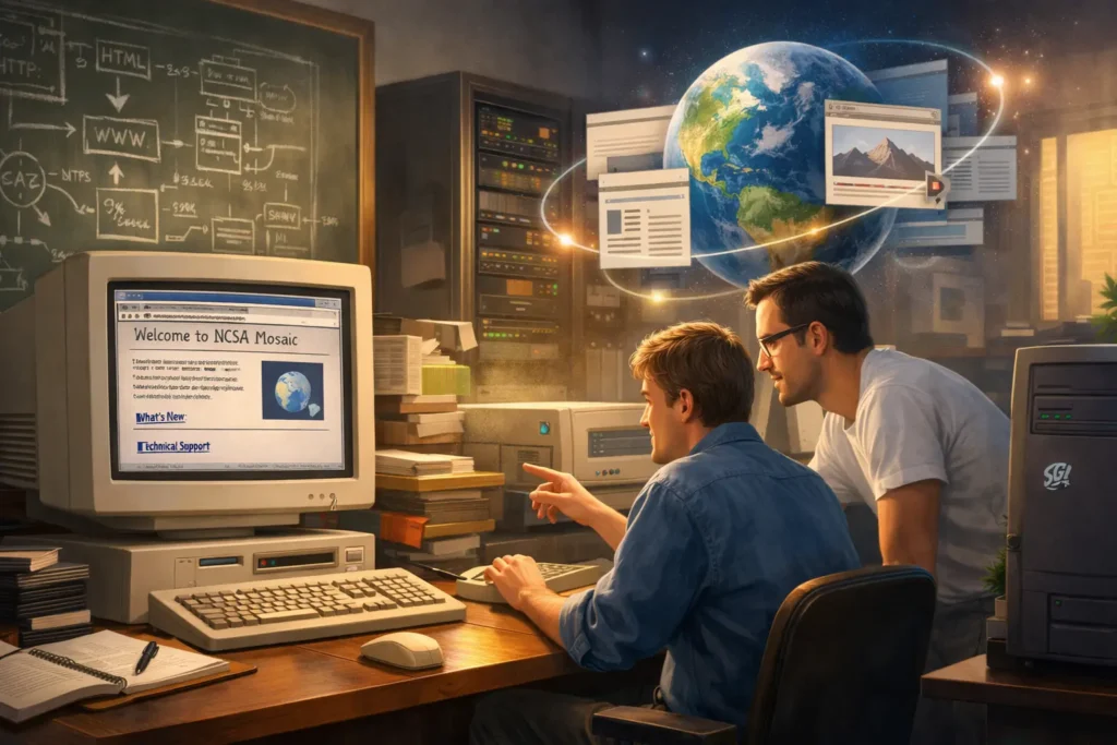 Netscape1994Équipe de MosaicIntégration commerciale et diffusion grand public